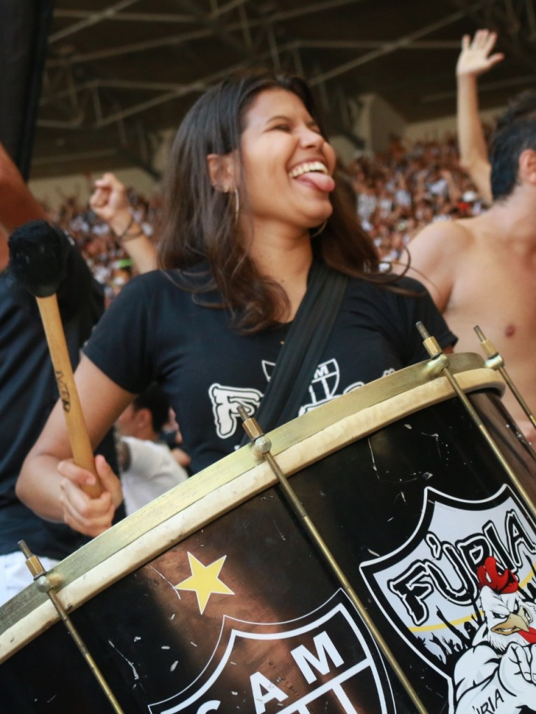 Vitória Diniz (22 anos) vem de uma família inteira de atleticanos fanáticos, incluindo o avô, com quem conviveu muito. No entanto, seus pais não gostam de futebol, e sempre evitaram que ela frequentasse estádios. “Minha imersão tardia no ambiente de torcida foi acolhedora, em grande parte, pela presença da Grupa na minha vida. Uma amiga me apresentou o grupo, e eu estive ali durante um tempo até finalmente poder ir ao Mineirão pela primeira vez, no aniversário do time. Me vi insegura, ansiosa e não gostaria de ir sozinha”. Ali foi criado um laço que desde então só se fortalece.