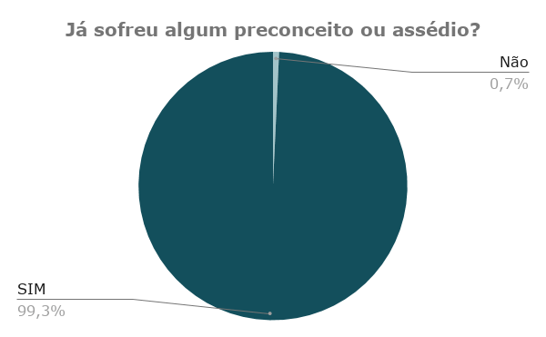 Apenas 3 mulheres declararam nunca terem sofrido os preconceitos e assédios listados, e 4 sofreram apenas uma vez. Isso significa que 402 torcedoras foram vítimas de discriminação por duas ou mais vezes.
