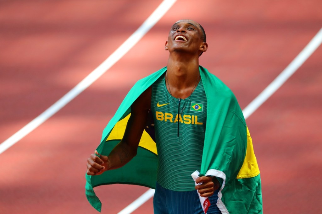 Alison dos Santos comemora o bronze em Tóquio 2020. Foto: Rodolfo Vilela/rededoesporte.gov.br