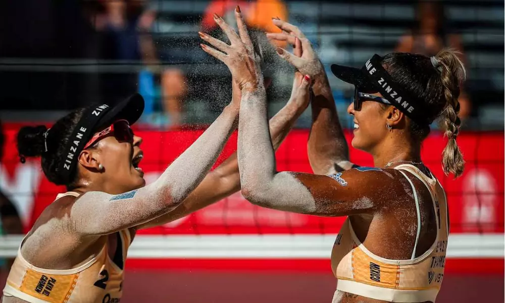 As atletas Thâmela e Vic garantiram o ouro na etapa de Saquarema do Circuito Brasileiro de Vôlei de Praia, depois de superarem a dupla campeã olímpica Duda e Ana Patrícia, no último domingo (6). As jogadoras venceram as medalhistas de Paris 2024 por 2 sets a 0.