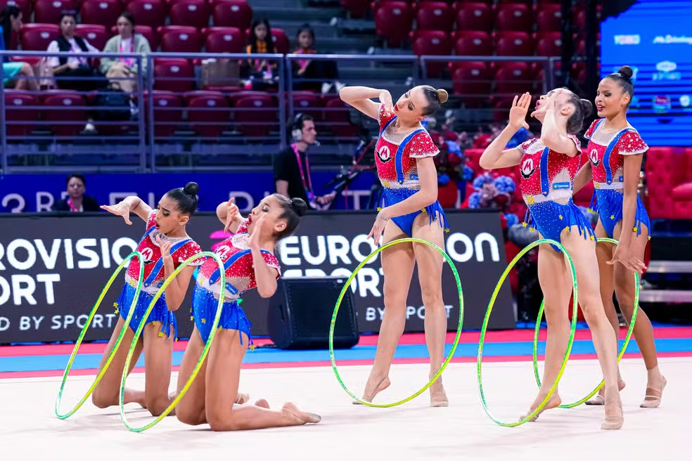 No sábado (21), o conjunto brasileiro garantiu uma inédita medalha de prata no ranking geral, este que soma a nota de duas apresentações. Com uma ótima rotina ao som do tema de Mario Bros nos cinco arcos e uma performance com o clássico “Tico Tico no Fubá” nas maças, a equipe composta por Andriely Cichovicz, Julia da Cruz, Amanda Manente, Alice Neves e Clara Vaz alcançou o segundo lugar com 48.900 pontos, ficando atrás apenas da anfitriã Bulgária (49.900), enquanto a Ucrânia completou o pódio com 48.400. Destaque para a pontuação das brasileiras nos arcos, a maior entre todas as equipes da competição: 25.100.