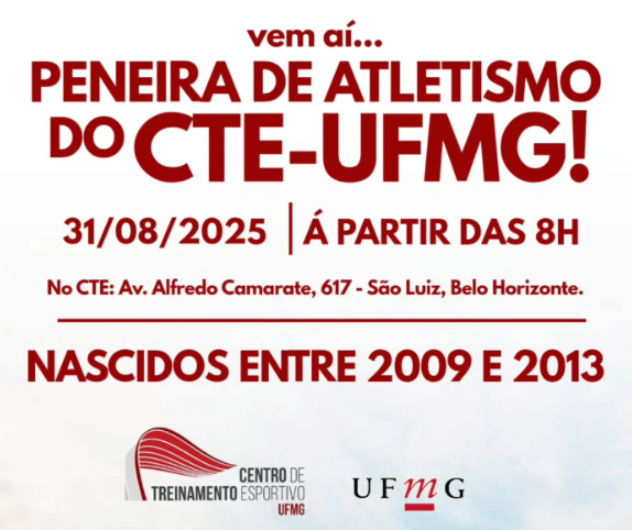 O Centro de Treinamento Esportivo (CTE) da UFMG anunciou a realização de uma peneira de atletismo no dia 31 de agosto, a partir das 8h. O evento tem como objetivo selecionar novos talentos para integrar a equipe de atletismo do centro.