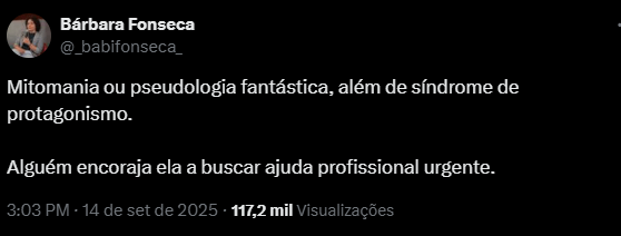 A dirigente de futebol das Cabulosas, Bárbara Fonseca, fez postagens no X, antigo Twitter, em referência aos recentes acontecimentos. Após a repercussão da entrevista da lateral esquerda, Bárbara declarou: