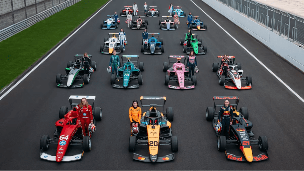 Em 2025, a categoria conta com seis equipes, cada uma com três carros. Desde o ano passado, as dez equipes da Fórmula 1 passaram a ter participação direta: cada uma apadrinha uma pilota, que corre sob suas cores. As demais também contam com apoio de grandes marcas.