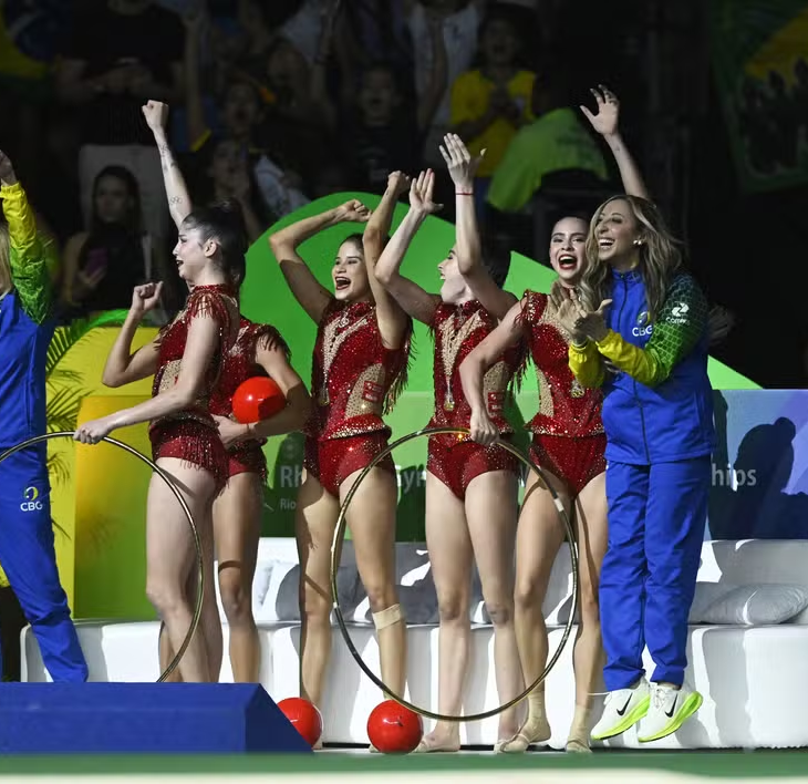 No Campeonato Mundial de Ginástica Rítmica, realizado no Parque Olímpico da Barra, no Rio de Janeiro, de quarta-feira (20) a domingo (24), a seleção brasileira conquistou duas medalhas de prata inéditas. A primeira foi no conjunto geral, no sábado, e a segunda veio na prova mista, no domingo.